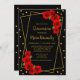 Invitación Rosa Roja Quinceañera Negra y Dorada