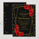 Invitación Rosa Roja Quinceañera Negro y Dorado