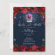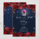 Invitación Rosa roja resplandor mágico boda azul marino plate