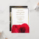 Elegante fondo blanco con imagen de rosa roja adornada con marco dorado y foto personal en la parte posterior. Esta moderna y minimalista invitación a las bodas es una excelente manera de invitar a sus invitados. Simplemente personaliza la información de eventos y la foto en esta plantilla para crear una invitación única. La foto de este diseño está pensada solamente para el ejemplo; por favor, reemplácelo por el suyo propio.