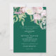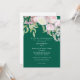 Invitación a la boda de follaje floral rosada. Fondo verde esmeralda.