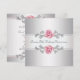 Elegante plata y blanco con rosas rosadas invitación de fiesta de aniversario de bodas de plata 25 años clásica.