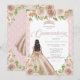 Invitación Rosa Rubor Floral Princesa Tiara Quinceañera