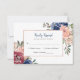 Esta tarjeta de respuesta de boda moderna cuenta con hermosas flores de acuarela pintadas a mano en rosa rubor y azul marino para un estilo boho chic y moderno. El marco rectangular geométrico del centro tiene un aspecto elegante de rosa dorada falsa, y las fuentes son una mezcla de escritura a mano moderna y texto simple.