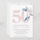 INVITACIÓN ROSA SUAVE FLORAL AZUL 50 ANIVERSARIO DE CUALQUIER