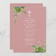 Esta elegante invitación a bautizar el bautizo de pantismo rosa rosa con polvorientas botánicas de eucalipto puede ser personalizada con su información en tipografía de moda con iniciales en monograma al revés. Diseñado por Thisisnotme©