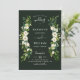 Elige el romance con esta hermosa invitación floral a la boda. El diseño floral acuático presenta unas bonitas rosas blancas y una vegetación exuberante con un fondo verde forestal. Los arreglos florales enmarcan la carta de la invitación. Personaliza con tus nombres y detalles del boda. El color de fondo y el color del texto se pueden personalizar según sea necesario. Encontrará artículos de papelería boda en nuestra colección de bodas de jardín Rosa.