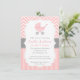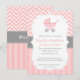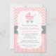 Invitación Rosa y Blanco Chevron, Cochecito, Fiesta de Bebé N