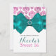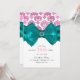 Invitación Rosa y blanco damasco lazo azul turquesa glamuroso