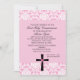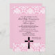 Comience su celebración apagado con esta invitación elegante con todo delicada para eso comunión santa de los chicas especiales. Tiene un damasco rosado en el top y la parte inferior de la invitación. En la parte inferior en el centro hay una cruz negra con un corazón rosado en el centro de él. Compruebe hacia fuera los muchos otros artículos en esta línea tal como etiquetas, franqueo, agradezca le las notas, y más.