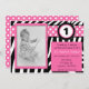Este rosa y estampado de zebra bonitos temáticos invitan es una manera linda y de la diversión de invitar a sus huéspedes a su fiesta de cumpleaños de las niñas. ¡Modifiqúelo para requisitos particulares con la edad, la foto y el texto de su niño!
