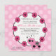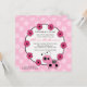 Comience su acontecimiento de la derecha con nuestro tan así que la invitación dulce de la fiesta de bienvenida al bebé que ofrece la mariquita rosada más linda con un marco floral en un rosa en fondo punteado polca rosada. Apenas modifique nuestra invitación para requisitos particulares con su información de la fiesta de bienvenida al bebé y usted es todo fija para ir.