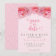 Invitaciones Save the Date con hermosas rosas acuarela rosadas. Reemplace el texto del marcador de posición en la plantilla para agregar su información. Para más opciones, como cambiar la fuente y su tamaño, haga clic en el botón "Personalizar".