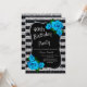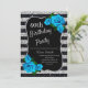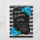 Invitación Rosas azules Purpurinas de rayas negras plateadas