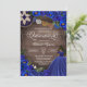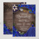 Invitación a la quinceañera en azul real ceruleano con acentos dorados y banner de papel picado, gorra charro, botas de vaquera. Consulte la tienda para ver esta invitación con chicas de diferentes colores de cabello y tonos de piel.