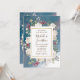 Invitación Rosas Blancas Bayas Rojas en Boda Cristiana Azul