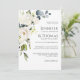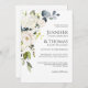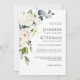 Con un popular esquema de color neutro, esta exclusiva invitación a la boda cuenta con un ramo en cascada de flores de acuarela blanca con eucalipto y vegetación. Las flores incluyen rosas, hortensias y flores mixtas a juego para un efecto encantador. Los emparejamientos de texto usados en este diseño presentan los nombres de la novia y el novio de manera prominente utilizando un elegante tipo de letra serif en el funda superior, junto con otro popular tipo de letra serif. Personalice la plantilla de texto fácil de usar con los detalles de su boda. La parte trasera de esta invitación es blanca.
