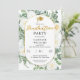 ¿Tu graduado favorito se gradúa este año? Entonces, este diseño floral de graduación de rosas blancas y exuberante vegetación de color verde salvia elegante y clásico podría ser justo lo que necesitas para planificar la fiesta perfecta para tu graduado. Cuenta con un marco ovalado oblongo de tono dorado y texto con tipografía dorada elegante.