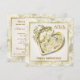 Elegante invitación de 60 Aniversario de Bodas - Rosas blancas en un corazón de oro decorado con espirales florales.