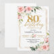 Rosa rubor, dorado, flores como rosas, rosa polvoriento y follaje de eucalipto se unen para crear un tema de jardín boho romántico. Combinar estos elementos con elegante lettering de estilo script trendy en estilo acuarela hace que sea un diseño de Invitación de cumpleaños número 80 impresionante. La combinación de tonos pastel suaves y follaje natural evoca un sentido de encanto caprichoso y sofisticación, perfecto para una Invitación de cumpleaños número 80 romántica y memorable.