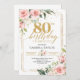 Rosa rubor, dorado, flores como rosas, rosa polvoriento y follaje de eucalipto se unen para crear un tema de jardín boho romántico. Combinar estos elementos con letras de escritura elegante y de moda en estilo acuarela hace que sea un diseño de Invitación de cumpleaños número 80 impresionante. La combinación de tonos pastel suaves y follaje natural evoca un sentido de encanto caprichoso y sofisticación, perfecto para una Invitación de cumpleaños número 80 romántica y memorable.