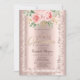 Elegante corona de purpurina, rosas y marco en invitación de fiesta de quinceañera de oro rosa.