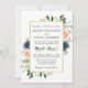 Moderna y elegante color de agua Eucalyptus Verdor Roses rosados Dusty Rosas Azules Invitación a la boda del marco de oro - Foto Atrás