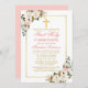 Elegante acuarela Magnolias y Rosas Invitación floral a la primera comunión sagrada incluye magnolias blancas, rosas rosas rosas rosas y vegetación. Marco dorado. Cruz de Oro.