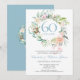 Con una delicada guirnalda de rosas de follaje floral de acuarela, esta elegante invitación de aniversario de bodas de 60 / 75 años se puede personalizar con los detalles de su aniversario de diamante / platino. El reverso presenta una guirnalda floral a juego que enmarca las fechas de su aniversario en texto blanco elegante sobre un fondo azul diamante. Diseñado por Thisisnotme©