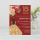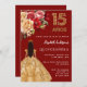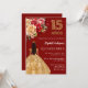 Invitación Rosas de florines de vestimenta dorada roja de Qui