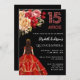 Invitación Rosas de florines de vestimenta roja negra de Quin