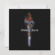 Un dragón rojo sobre una espada y rosas rojas contra un telón de fondo negro.