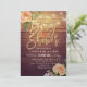 Plantillas de tarjetas de invitación de Baby Shower - Guión de Relieve metalizado dorado falso con luces florales y de cadena de rosas blancas de color rosa pálido sobre fondo de madera rústica. Todos Los Estilo De Texto, Los Colores Y Los Tamaños Se Pueden Modificar Para Ajustarse A Sus Necesidades.