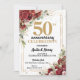 Invitación Rosas de marco rojo intenso y dorado del 50 aniver