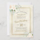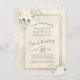 Esta hermosa invitación virtual a la boda presenta un magnífico diseño de moda boho con rosas de color marfil o melocotón muy pálido, hojas de eucalipto y vegetación sobre un fondo de color crema moteado con un falso marco dorado de Relieve metalizado. Hay una caligrafía de guion dorado y un campo flexible para la información para que puedas imprimir tus instrucciones en vivo directamente o apuntar a tus invitados a tu sitio web. Una forma encantadora de invitar a tu familia y amigos a compartir en tu día especial.
