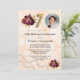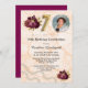 Celebra tu cumpleaños con estilo. Esta bonita invitación se hace con una elegante combinación de textura de mármol naranja, perlas, un número único de globo dorado y hermosos Rosas ingleses. Este artículo es fácil de personalizar con una foto y un texto.