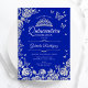 Invitación a la celebración de Quinceanera de plata azul real. Incluye tiara, mariposas, rosas plateados y tiara. Perfecto para una elegante celebración de glam al estilo de la princesa. Personaliza con tus propios detalles. Invitaciones Zazzle impresas o una plantilla imprimible digital de descarga instantánea.