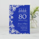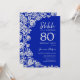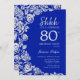 Sorpresa floral de plata azul real 80 cumpleaños invitación a fiesta. Diseño elegante con rosas, Relieve metalizado falso plateado y tipo de letra de guión de tipografía. La carta de invitación a la moda es perfecta para una elegante celebración de cumpleaños femenina. Se puede personalizar a cualquier edad. Invitaciones Zazzle impresas o una plantilla imprimible digital de descarga instantánea.