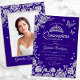 Invitación de celebración de Quinceañera morada y plateada. Características fuente de escritura, mariposas, rosas de plata y tiara. Diseño elegante con foto en la parte trasera de la tarjeta. Perfecto para una celebración de glamour de estilo princesa. Personalice con sus propios detalles. Impreso invitaciones Zazzle o plantilla digital imprimible de descarga instantánea.