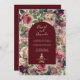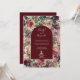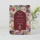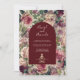 Rosas de época, flores y follaje para un encantador collage floral en tintes victorianos vintage. Combinado con el maroon oscuro para un arco de novias que presenta su invitación a la boda. Un toque de romanticismo moderno se da con el aspecto manuscrito y la mezcla de fuentes. Para el texto se utiliza un color de rosa pálido. Motivo dorado de la piña de bienvenida utilizado en el frente y en el reverso.