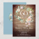 Con una delicada guirnalda floral de rosas acuarela sobre paneles de madera rústica boho, esta elegante invitación botánica para el 60º aniversario de boda se puede personalizar con la información de su aniversario de diamante. El reverso presenta una guirnalda floral a juego que enmarca las fechas del aniversario en elegante texto blanco sobre fondo azul diamante. Diseñado por Thisisnotme