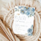 Invitación Rosas florales de color azul turbio bebé ducha