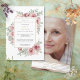 Una elegante invitación de recuerdo fotográfico de celebración de la vida con flores de rosa polvorientas. Diseñado por Thisisnotme©
