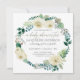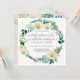 Con una paleta de colores moderna, muda y etérea de blanco suave, carbón vegetal, verduras azules y gris, este tema de ducha de bebé estilo BOHO funcionará en cualquier época del año y género. Con una acuarela pintada a mano color rosa blanco floral y una franja de hojas de un estilo moderno y relajado, con rosas de marfil de alabastro, follaje de hojas verdes suavemente azul en una corona en la parte delantera. El fondo es blanco. En el reverso hay un patrón suave de gris de paloma caliente con una franja de hojas florales. Derechos reservados Audrey Jeanne Roberts, todos los derechos reservados.