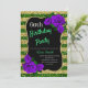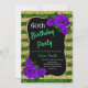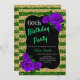 Elegante purpurina de rayas verdes y doradas y rosas morados invitan a fiestas de cumpleaños para mujeres de cualquier edad. Se puede cambiar la edad para cualquier edad. El texto se puede cambiar a cualquier cosa para que se ajuste a su evento. ¡Las fuentes, el color de la fuente y el texto son completamente personalizables! La forma y el tipo de papel se pueden personalizar para adaptarlo a su presupuesto y a su gusto.