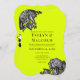 Esta invitación a la boda presenta ilustraciones audaces de rosas con un estilo antiguo de grabado en blanco y negro, con un brillante y vibrante fondo verde cal eléctrica. Sus detalles aparecen en negrita con letras de impresión en negro. El reverso tiene un ramo de coordinación de rosas negras y blancas que está listo para ser personalizado con las iniciales de monograma de la novia y el novio.