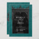 Traslade a sus huéspedes a un mundo de oscuridad y encantadora elegancia con nuestra vintage invitación a bodas góticas. El fondo verde verde azulado, profundo y envejecido, prepara el terreno para un sorprendente contraste, a medida que el texto en negrita blanco emerge de intrincados cuadros de texto en negro. En el pináculo de esta invitación, un borde gótico tridimensional adornado con un arco gótico negro real captura la esencia del misterio y el romance. La parte trasera está adornada con dos viñas entrelazadas de rosas negros formando sutilmente un corazón alrededor de dos cuervos abrazadores, lo que añade un toque de encanto dramático. Desate la magia y marca el tono para un día de boda inolvidable. Creado por Simply Farmhouse Press.