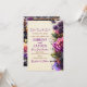 Un magnífico morado, negro y dorado con fondo de papel vintage invitación a la boda de steampunk floral. El frente está adornado con hermosos rosas morados, oro y engranajes de cobre y llave, mariposas y flores.