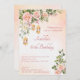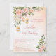Invitación elegante de fiesta de cumpleaños con rosas pastel crema rosa y linternas marroquíes.