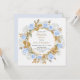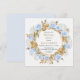Invite a sus invitados con estilo con un diseño elegante de rosas azules polvorientas entrelazadas con hojas doradas brillantes: la combinación perfecta de romance suave y lujo atemporal.